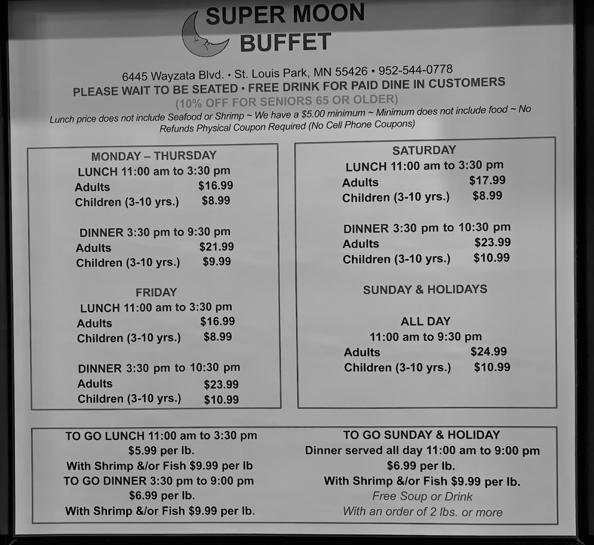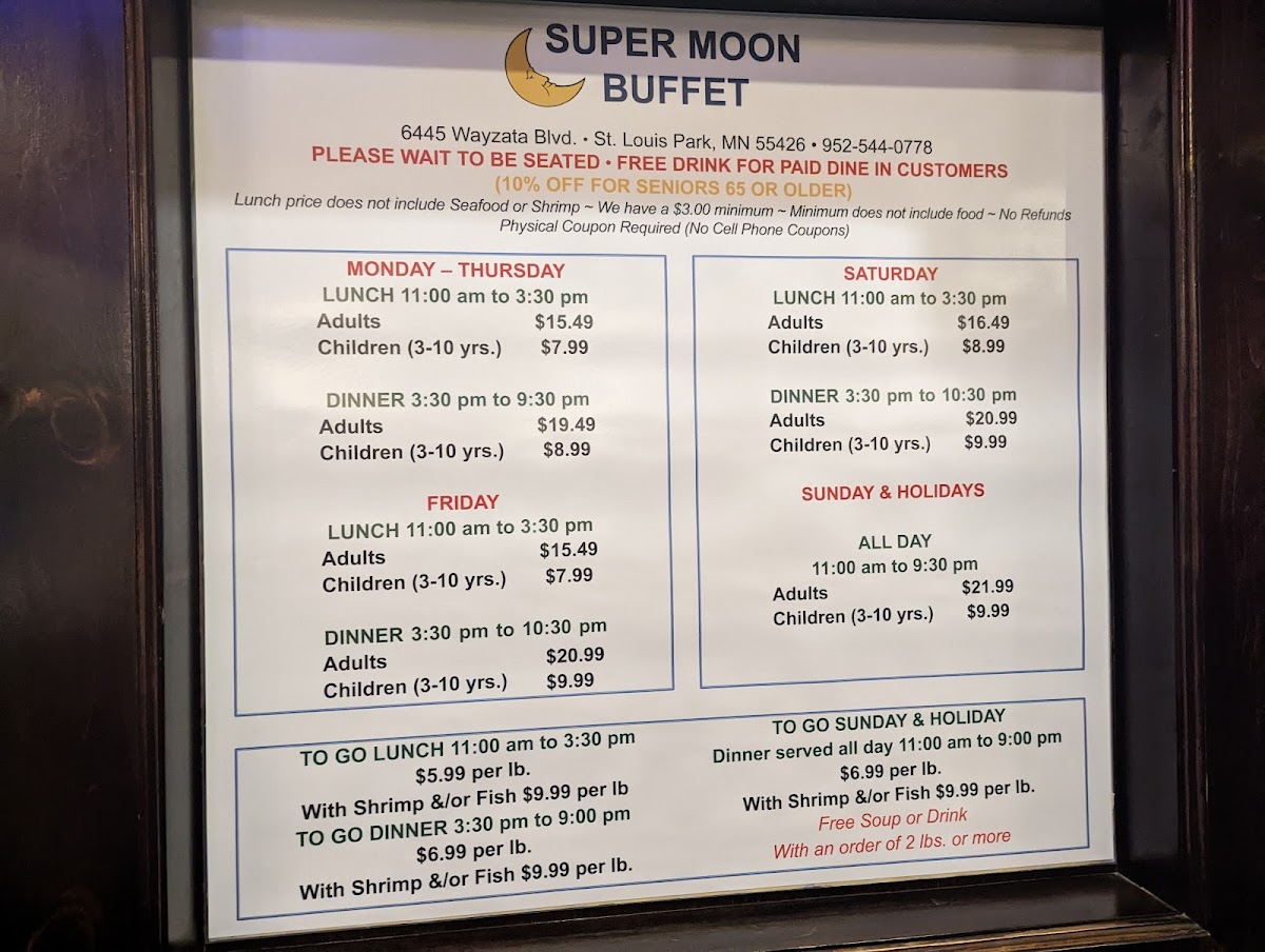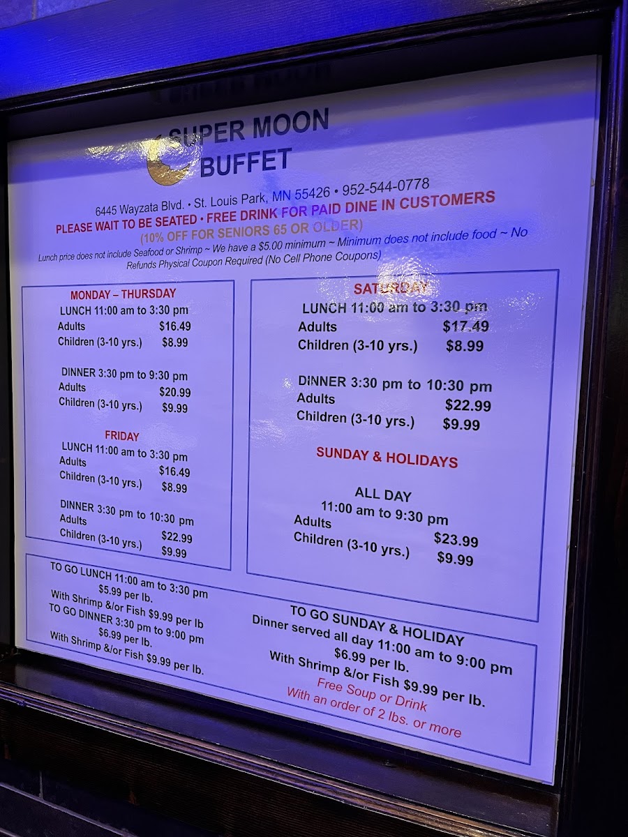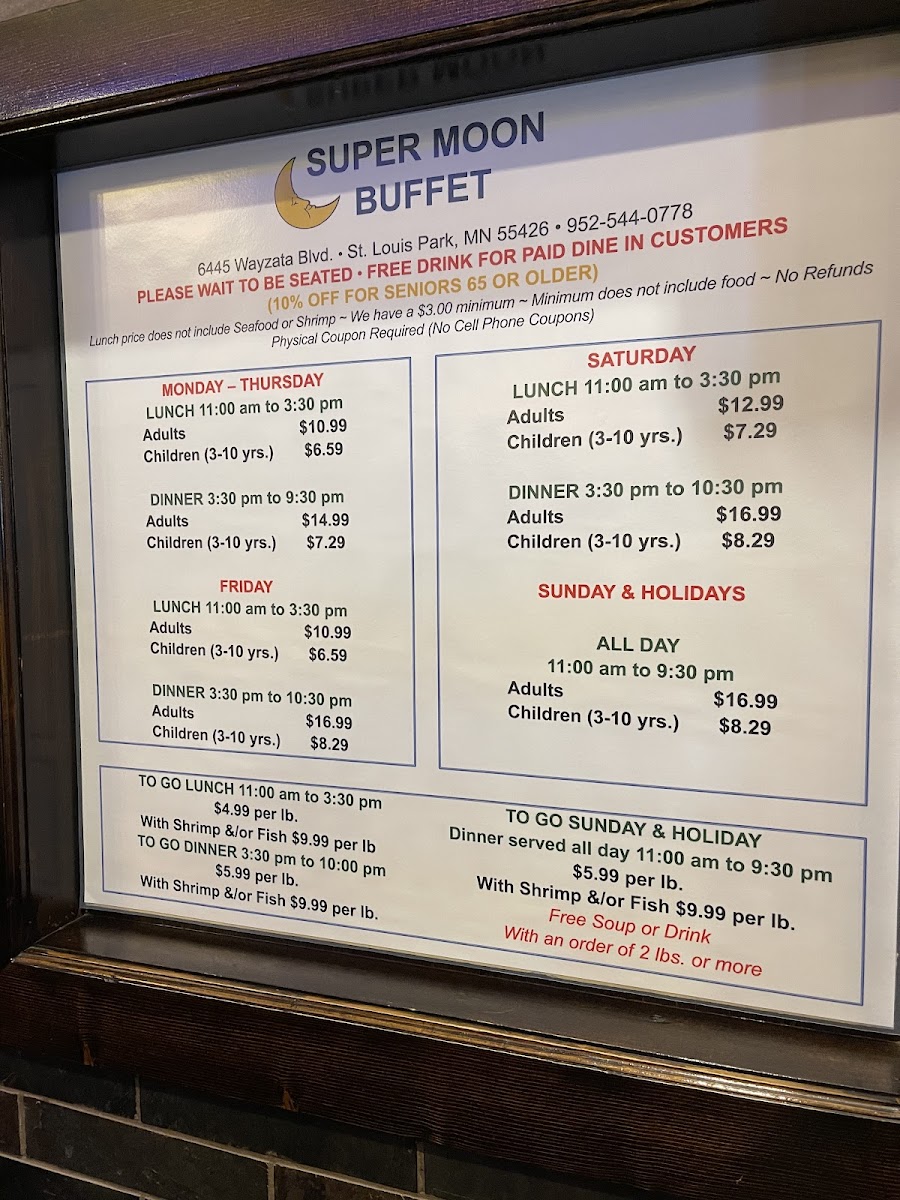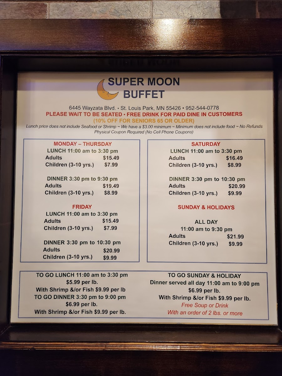Welcome to Super Moon Buffet, a delightful culinary destination located at 6445 Wayzata Blvd in St Louis Park, MN. This buffet boasts a rich array of choices, appealing to both traditional Chinese cuisine lovers and those seeking unique dishes not found elsewhere.